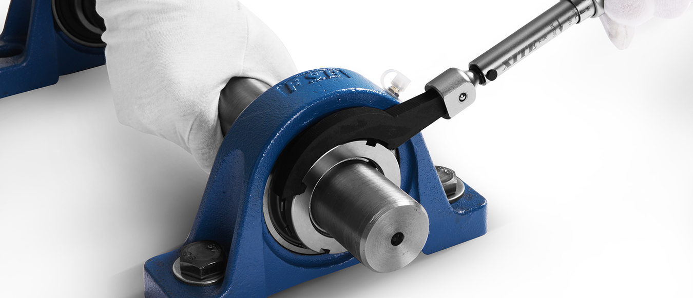 用扭矩扳手按规定的锁紧扭矩将紧定套的锁紧螺母拧紧